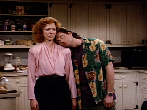 - Mae was rediscovered by Brian when he saw her get hit in the head with a golf ball on TV (Mother Wore Stripes). Casey similarly rediscovered her estranged husband Stuart when she saw him hit in the head with a baseball on TV (Love Overboard).